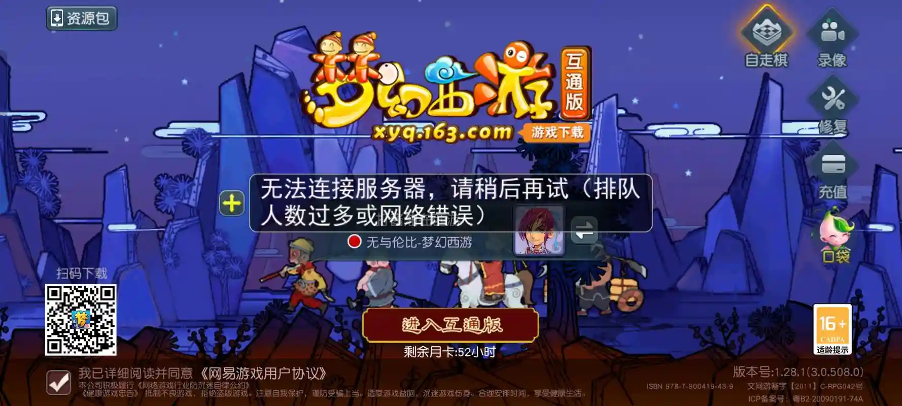 2、网络不稳定也可能导致排队困难。可以尝试使用游戏加速工具来改善网络连接,提高进入游戏的成功率。多次尝试进入:如果一次未能成功进入,可以多次尝试。有时候多试几次就能避开高峰,顺利进入游戏。综上所述,解决梦幻西游手游排队人满进不去的问题需要综合考虑游戏状态、排队时间、网络连接等多个因素。
