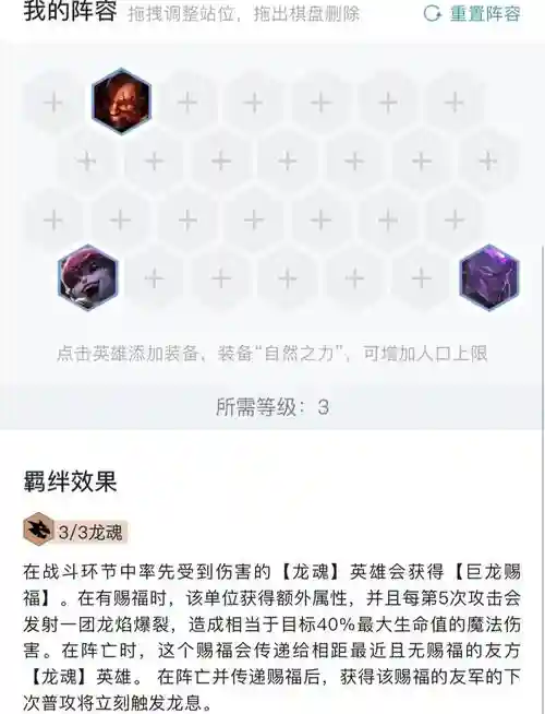 3、阵容推荐羁绊组成:6天神 4摄魂使 2玉剑仙 2决斗大师强化符文:战力提升类:珠光莲花、断魂夺魄、天神时代、天神启示阵容前提:有天选内瑟斯,摄魂和天神都可以,但是最终成型的阵容会有一些细微区别。