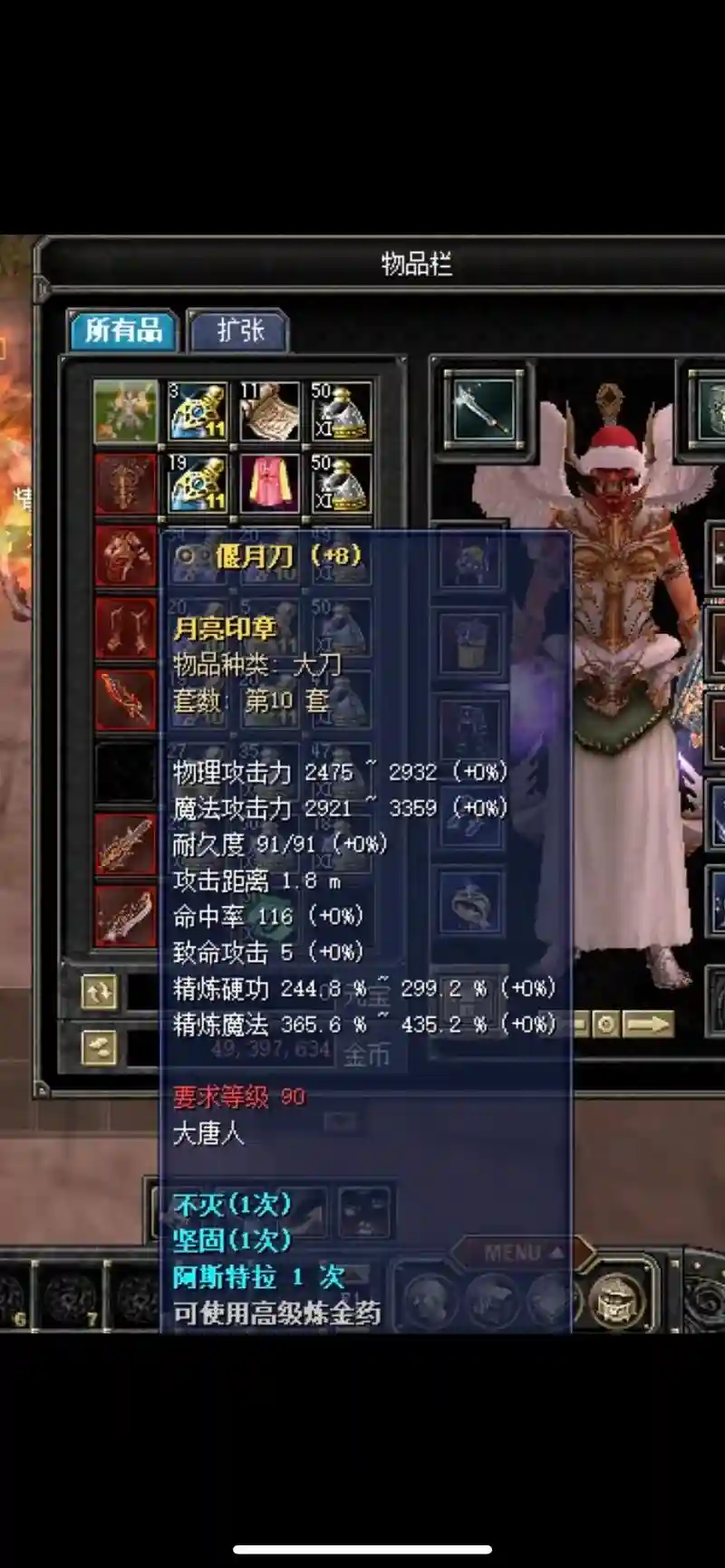 3、具体操作步骤如下:选择适合自己职业的装备,装备等级越高,加成属性也会越高。需要将装备加到+12,通过加灵来提升装备的属性,当装备加到+120时,属性加成已经达到顶峰,需要进行升星操作。
